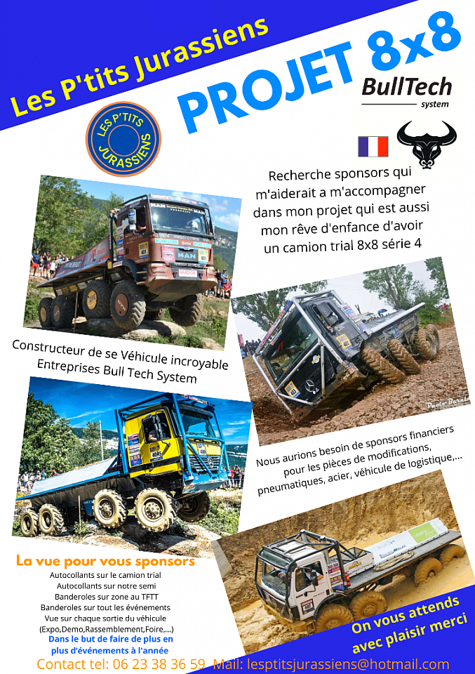 Nous sommes une association de loi 1901 passionnée par le Truck Trial en série 2, et nous évoluons au volant d'un Unimog 416. Depuis maintenant deux ans, nous participons activement au Trophée France Truck Trial. Grâce à notre détermination et notre esprit d'équipe, nous avons atteint la 6ème position au classement général de l'année 2024 et avons décroché une belle 4ème place à la finale en 2024. Aujourd'hui, nous allons plus loin en lançant un projet ambitieux : un camion trial 8x8 100% FRANÇAIS, conçu et développé dans notre pays. Ce projet symbolise notre engagement pour le monde du Truck Trial FRANÇAIS.